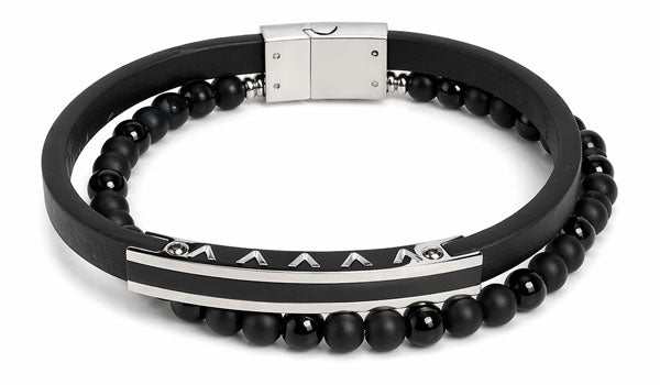 Leather & Onyx Gemstone Thomas Bracelet