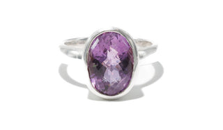 Sterling Silver Oval Shaped Faceted Amethyst Natural Gemstone Ring