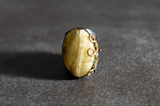 Luxury Sterling Silver Oversized Adjustable Baltic Amber Ring