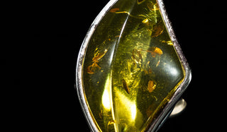 Luxury Sterling Silver Obtuse Triangle Shaped Adjustable Baltic Amber Ring