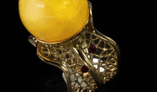 Luxury Sterling Silver Gold Butterscotch Amber & Ruby Gemstone Ball Ring