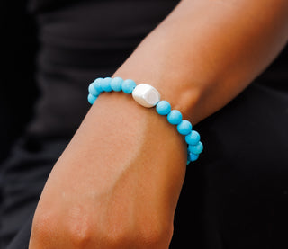 Turquoise Howlite & Mother Of Pearl Natural Gemstone Bracelet
