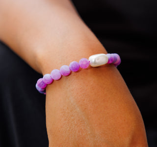 Purple Dragon Vein Agate & Mother Of Pearl Natural Gemstone Bracelet