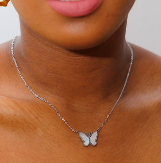 Adjustable Butterfly Mother Of Pearl Natural Gemstone Necklace